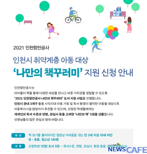 [뉴스카페]인천항만공사(사장 최준욱)는 지역사회 돌봄 격차 해소를 위해 취약계층 아동을 대상으로 ‘2021 나만의 책꾸러미’ 사업을 실시한다고 18일 밝혔다.