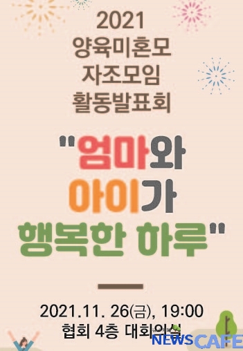 [뉴스카페]인구보건복지협회(회장 김창순)는 ‘2021 양육미혼모 자조모임 활동발표회 - 엄마와 아이가 행복한 하루’를 오는 26일 인구보건복지협회 대회의실에서 개최한다.