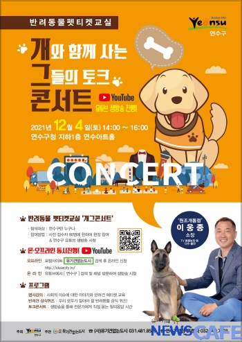 [뉴스카페]연수구(구청장 고남석)는 오는 4일 오후 2시부터 연수아트홀에서 반려동물 양육가구와 비 양육가구가 상생하는 바람직한 반려동물 문화 조성의 하나로 연수구 반려동물 교양강좌 반려동물 공공 예절 교실을 진행한다.