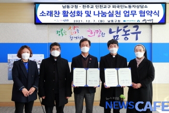 [뉴스카페]인천시 남동구는 지난 7일 천주교 인천교구에서 운영 중인 외국인노동자상담소와 소래찬 김치 활성화 및 지역 소외계층 나눔을 위한 업무협약을 맺었다고 8일 밝혔다.