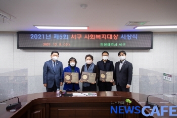 [뉴스카페]인천 서구(구청장 이재현)는 지난 8일 ‘2021년 제5회 사회복지 대상 시상식’을 열고 사회복지종사자 및 모범 구민 총 3명을 선정 상패를 수여했다고 밝혔다.