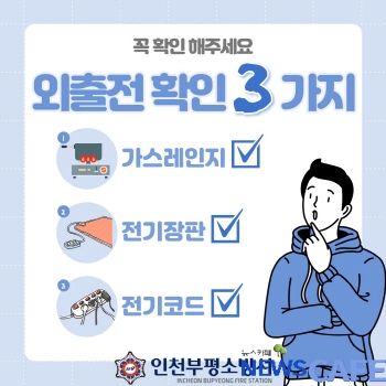 [뉴스카페]인천 부평소방서(서장 김기영)는 생활 속 부주의에 의한 화재 예방을 위해 외출 전 가스·전기 차단을 확인할 것을 당부한다고 밝혔다.