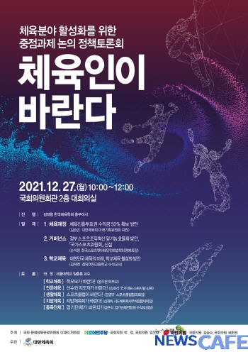 [뉴스카페]대한체육회(회장 이기흥)는 27일 오전 10시 국회의원회관 대회의실에서 체육 분야 활성화를 위한 중점과제 논의를 위해 '체육인이 바란다' 정책토론회를 주관한다.