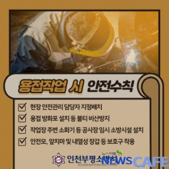 [뉴스카페]인천 부평소방서(서장 김기영)는 공사장 용접·용단 작업 시 불티 화재에 각별한 주의와 안전수칙 준수를 당부한다고 밝혔다.