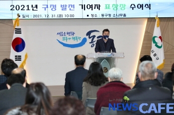 [뉴스카페]인천 동구(구청장 허인환)가 '2021년 구정 발전 기여자 표창장 수여식'을 31일 동구청 소나무홀에서 개최했다.