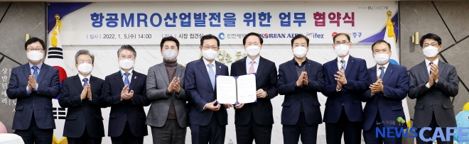 인천광역시는 5일 시청 대접견실에서 대한항공과 ‘항공정비(MRO)산업 발전을 위한 업무협약’을 체결했다고 밝혔다.