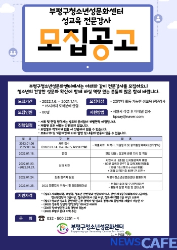 [뉴스카페]인천 부평구 청소년성문화센터가 오는 14일까지 성교육 전문강사를 모집한다.