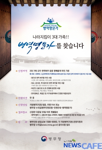 [뉴스카페]인천병무지청(청장 최구기)은 2022년도 병역명문가 신청을 다음달 28일까지 받으며, 표창 가문 선정을 위한 심사는 5월에 진행될 예정이라고 밝혔다.