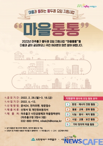 [뉴스카페]인천 미추홀구(구청장 김정식)는 14일 2022년 통두레 모임 지원사업 ‘마을통통’을 시작한다고 밝혔다.