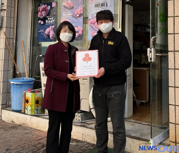 [뉴스카페]인천 중구 운서동지역사회보장협의체(공동위원장 유동숙·김영성)는 지난 11일 사랑의 열매 착한가게에 동참한‘BHC 공항신도시지점(대표 가정현)’에 현판을 전달하고 감사의 뜻을 전했다.