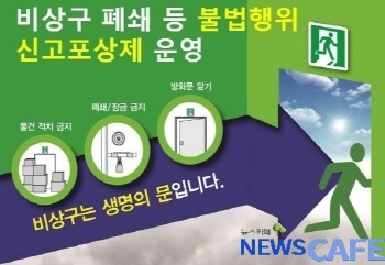 [뉴스카페]광주 동부소방서는 건물 관계인의 안전관리 의식 향상과 시민들의 소방시설 폐쇄 등 불법행위에 대한 관심 제고를 위한 소방시설 등 불법행위 신고포상제를 연중 운영한다고 20일 밝혔다.
