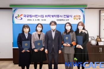 [뉴스카페] 인천 서구(구청장 이재현)는 지난 3일 검단신도시에 신규 개원 예정(6~9월)인 국공립어린이집 4곳의 위탁운영자에게 위탁계약증서를 전달했다고 4일 밝혔다.
