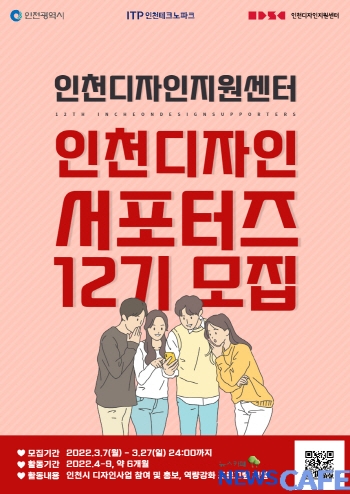 [뉴스카페]인천테크노파크(인천TP)는 오는 27일까지 인천시 디자인사업의 홍보 도우미 역할을 할 ‘인천디자인서포터즈(12기)’를 모집한다고 8일 밝혔다.