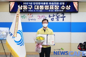 [뉴스카페]인천시 남동구는 행정안전부의 ‘2021년 재난 대응 안전 한국훈련’평가에서 우수 기관에 선정돼 대통령 표창을 받았다고 11일 밝혔다.