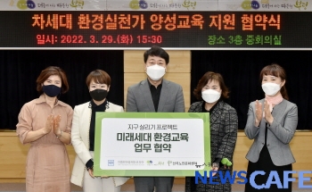 [뉴스카페]인천 부평구는 29일 구청 중회의실에서 지엠한마음재단코리아, 산곡노인문화센터와 차세대 환경실천가 양성교육 지원 협약을 체결했다.