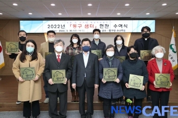 [뉴스카페] 인천 동구(구청장 허인환)는 지난 30일 동구 샘터 지정 기관을 대상으로 '2022년 동구 샘터 현판 수여식'을 개최했다.