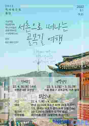 [뉴스카페]인천 부평구 청소년수련관이 오는 12일까지 지역 내 청소년을 대상으로 역사 체험 프로그램 2022 역사속으로 풍덩 ‘서촌으로 떠나는 골목길 여행’ 참가자를 모집한다.