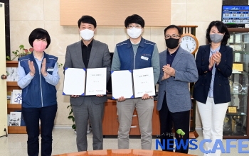 [뉴스카페]인천 부평구는 지난 19일 구청장실에서 전국공무원노동조합 인천지역본부 부평구지부와 ‘2021 공무원 노조 단체협약’을 체결했다.