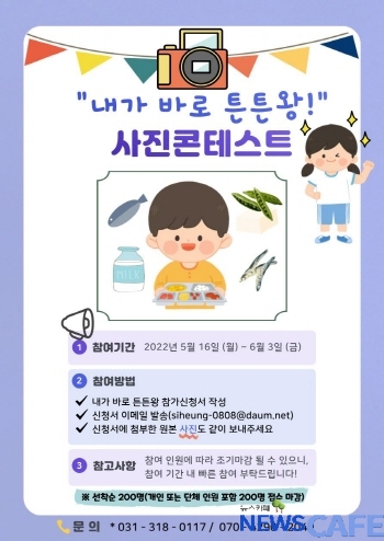[뉴스카페]시흥시 어린이급식관리지원센터(센터장 강현주)는 센터 등록기관 및 학부모를 대상으로 어린이 사진 콘테스트 ‘내가 바로 튼튼왕!’을 열어 5월 16일부터 6월 3일까지 신청서를 받는다.