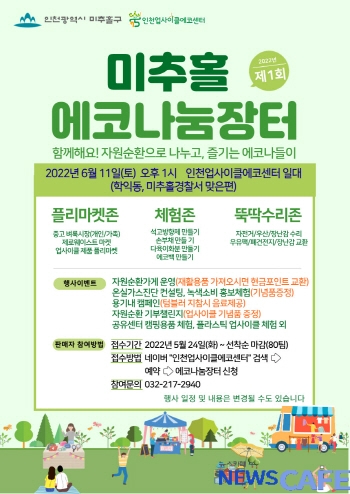 [뉴스카페]인천 미추홀구는 인천업사이클에코센터 주관으로 오는 11일 인천업사이클에코센터 일원에서 ‘2022 제1회 미추홀 에코나눔장터’를 개최한다.