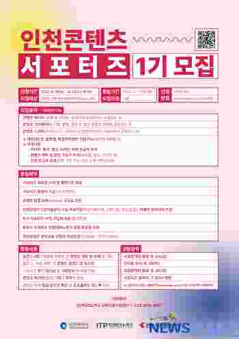 [뉴스카페]인천테크노파크(인천TP)는 콘텐츠 산업의 홍보 도우미 역할을 할 ‘인천 콘텐츠 서포터즈’를 모집한다고 14일 밝혔다.