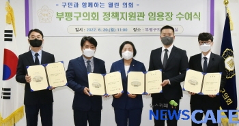 [뉴스카페]인천부평구의회(의장 홍순옥)는 지난 20일 부평구의회 의장실에서 ‘정책지원관 임용장 수여식’을 개최했다.
