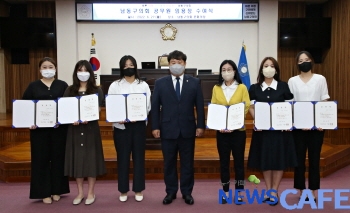 [뉴스카페]인천 남동구의회(부의장 정재호)는 27일 구의회 본회의장에서 정책지원관 등 6명에게 임용장을 수여했다.
