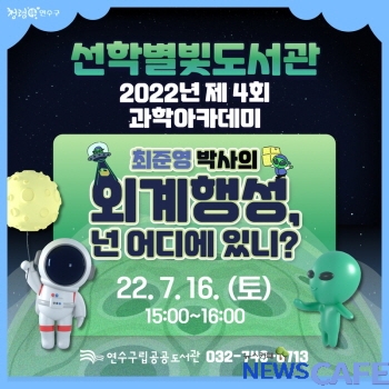 [뉴스카페]인천 연수구 선학별빛도서관은 오는 7월 16일 15:00에 외계행성에 대해서 알기 쉽고 재미있게 설명하는 제4회 과학 아카데미를 개최한다.