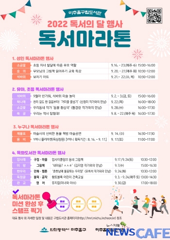 [뉴스카페] 인천 미추홀구(구청장 이영훈) 구립도서관은 다음달 한 달 동안 독서의 달 행사 ‘독서마라톤’을 운영한다.