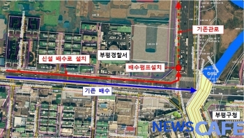 [뉴스카페]인천 부평구(구청장 차준택)는 최근 집중 호우로 1시간 가량 침수됐던 부평구청 사거리 길주로 구간에 오는 10월까지 신규 배수관과 수중펌프를 설치한다.
