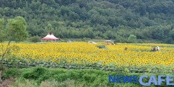 [뉴스카페]강화군 교동도 난정저수지에는 해를 쫓는 10만 송이의 해바라기가 노란색 물결을 이루며 방문객을 유혹하고 있다.