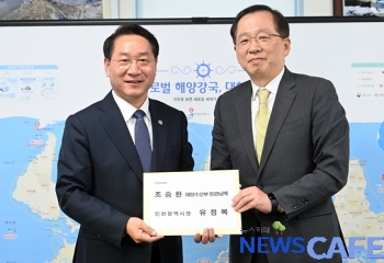 [뉴스카페]인천광역시는 유정복 시장이 18일 국립수산물품질관리원 서울지원에서 조승환 해양수산부 장관을 만나 제물포르네상스 추진과 주민 생활편의 증진을 위한 지역 현안사업에 대해 협조를 요청했다고 밝혔다.