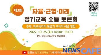 [뉴스카페]경기도교육청(교육감 임태희)이 오는 25일 안산교육지원청 한마음홀에서 학교폭력 예방과 교육적 해결방안을 찾는 토론회를 개최한다.