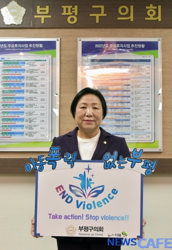 [뉴스카페]인천 부평구의회 홍순옥 의장이 26일 아동폭력 근절을 위한 #ENDviolence 캠페인에 참여했다.