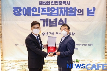 [뉴스카페]인천교통공사(사장 김성완)는 28일 ‘제5회 인천광역시 장애인 직업재활의 날’을 맞아 인천장애인직업재활시설협회로부터 중증장애인생산품 우선구매 우수기관으로 선정됐다고 밝혔다.