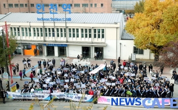 [뉴스카페]인천 중구(구청장 김정헌)는 월판선·인천발 KTX 인천역 유치를 촉구하는 서명운동 출정식을 7일 인천 중구청에서 개최했다.