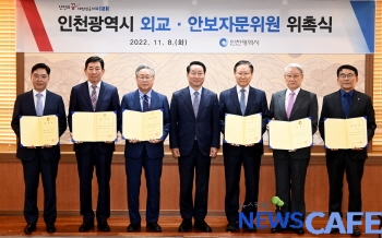 [뉴스카페] 인천광역시(시장 유정복)는 8일 김숙 전 유엔주재대사, 임호영 한미연합사령부부사령관 등 외교·안보 분야 전문가 9명으로 구성된 자문단을 발족하고 위촉장을 수여했다고 밝혔다.