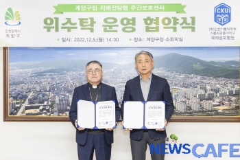 [뉴스카페]인천광역시 계양구(구청장 윤환)는 5일, 계양구립 치매전담형 주간보호센터(이하 ‘치매주간보호센터’)의 민간위탁 운영을 위해 (학)인천가톨릭학원 가톨릭관동대학교 국제성모병원(병원장 김현수)과 협약을 체결했다.
