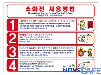 [뉴스카페] 광주 남부소방서(서장 이정자)는 지역 사회 가족 구성원의 외국인 비율이 높아짐에 따라 한글과 외국어가 동시 표기된 ‘외국어 옥내소화전 사용법 스티커’ 부착을 안내한다고 밝혔다.