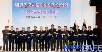 [뉴스카페]대한민국시도의회의장협의회(회장 김현기)와 인천광역시의회(의장 허식)는 27일 송도오크우드 프리미어 인천호텔에서 협의회 회장인 김현기 서울시의회 의장과 허식 의장을 비롯해 전국 10개 시·도의회 의장, 유정복 인천시장과 도성훈 인천시교육감 등이 참석한 가운데 ‘대한민국시도의회의장협의회 2022년 제7차 임시회’를 개최했다.