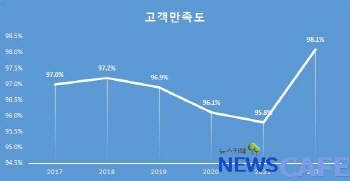 [뉴스카페]옹진군(군수 문경복)은 지난해 11월28일부터 12월9일까지 실시한 민원행정서비스 고객만족도 조사결과 전년보다 2.3% 상승한 98.1%로 매우 우수한 고객만족도 조사가 나왔다고 10일 밝혔다.