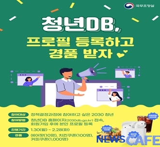 국무조정실(실장 방문규)은 정책결정과정에 청년들의 참여를 활성화하기 위해 청년과 정책담당자의 매칭을 지원하는 “청년DB”가 30일(월)부터 정식 서비스를 시작한다고 밝혔다.