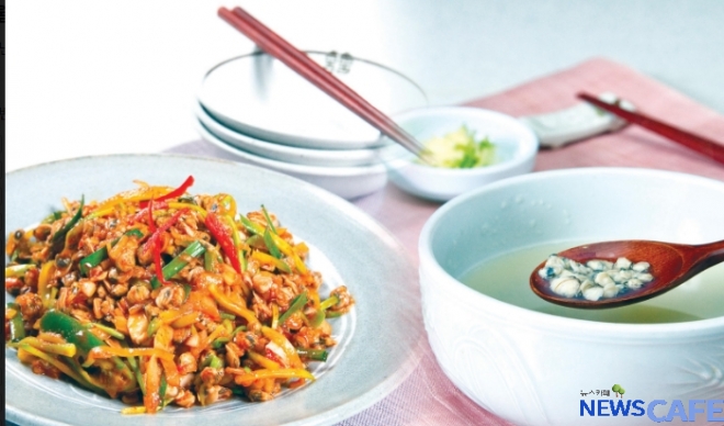재첩은 국, 회무침, 전 등으로 다채롭게 변주되는데 칼슘과 인이 풍부해 간 보호, 빈혈 예방에 탁월하고 열량이 낮아 다이어트 음식으로도 인기가 높다.