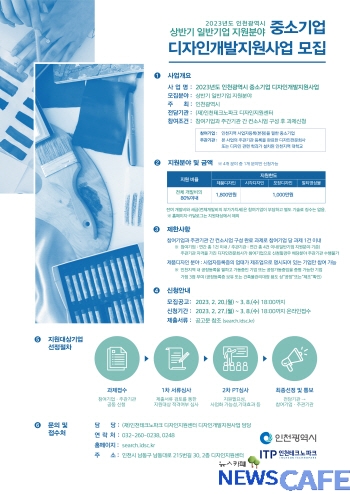 지원 대상은 인천에 본사를 둔 중소기업으로, 제품 분야는 1천800만 원, 시각·포장·멀티미디어 분야는 각각 1천만 원까지 디자인개발비용을 지원한다.