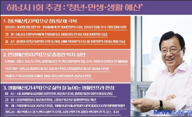 [뉴스 카페] 하남시(시장 이현재)는 ‘청년 지원, 민생 안정, 생활인프라 확충’을 이끌 2023년 제1회 추경 예산안을 673억원 편성해 의회에 요청했다고 6일 밝혔다.