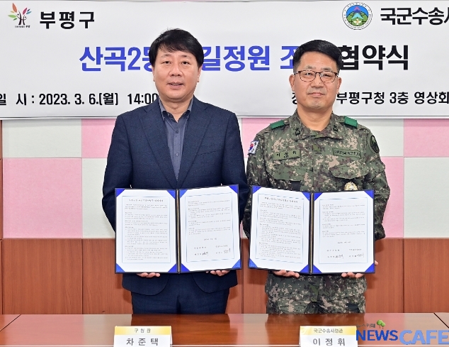 [뉴스카페] 부평구(구청장 차준택)는 지난 6일 구청 영상회의실에서 국군수송사령부와 철길정원 조성사업을 위한 양해각서를 체결했다.