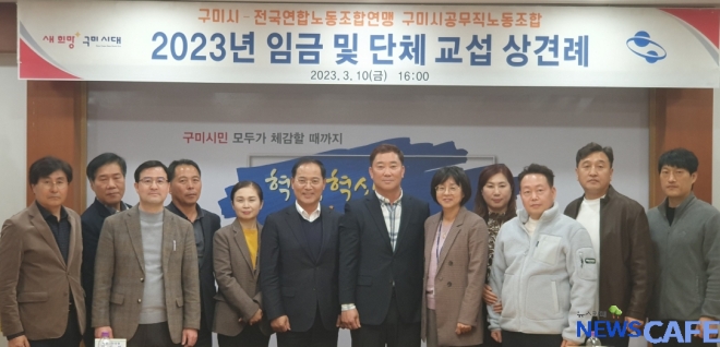 [뉴스카페] 구미시(시장 김장호)는 전국연합노동조합연맹 구미시 공무직노동조합(위원장 김정국)과 3. 10.(금) 16:00, 시청 3층 중회의실에서 2023년 임금·단체교섭에 앞선 상견례를 가졌다.