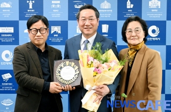김규찬 영종무료통행시민추진단 공동대표, 이재구 영종국제도시총연합회 공동대표, 영종학부모연대 박수현 공동대표는 20일 유정복 시장에게 ‘대한민국 미래성장 동력인 인천광역시의 발전과 세계적 인천국제공항의 도약을 위해 정부와 협의해 영종대교․ 인천대교의 통행료에 대한 담대한 정책을 결정하고 인천시민(중구 영종, 옹진군 북도면)들의 통행료 무료화를 관철시킨 귀하께 인천시민을 대표하여 감사의 마음을 이 패에 담았습니다’라는 마음을 담아 전달했다.