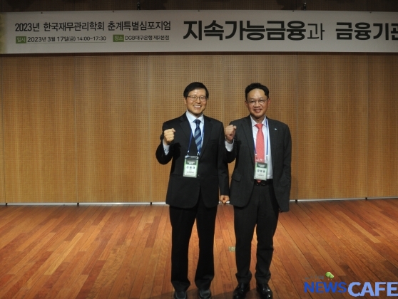 [뉴스카페] 한경국립대학교 경영학전공 신용재 교수((사)한국재무관리학회장)는 한국재무관리학회와 DGB금융그룹 공동 주최로 DGB 대구은행 제2본점에서 ‘지속가능금융과 금융기관’이라는 주제로 춘계특별심포지엄을 개최했다.