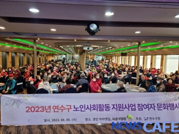 [뉴스카페]인천 연수구(구청장 이재호)는 지난 5일 2023년 노인사회활동 지원사업에 참여하는 어르신 400여 명을 대상으로 문화활동 행사를 진행했다.